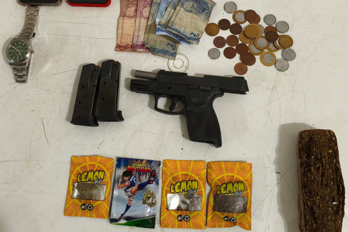 Os policiais militares conseguiram identificar e, na abordagem, o foragido se desfez da arma e tentou se esconder na sua residência, sendo preso e contido pelo efetivo policial. Dentro da casa foram encontrados e apreendidos, além de uma pistola calibre .40 com 36 munições intactas, 162g de maconha, relógio de luxo, dois aparelhos celulares, anotações da venda de drogas, R$ 34 reais em espécie, além de um veículo, Toyota Corolla-Preto.